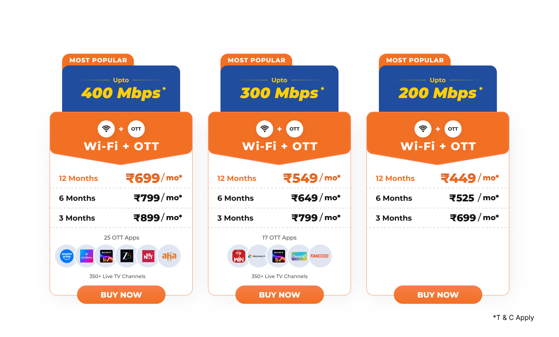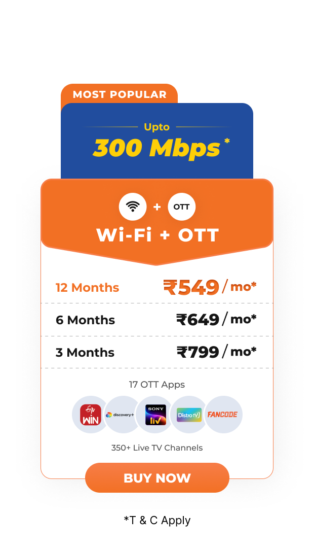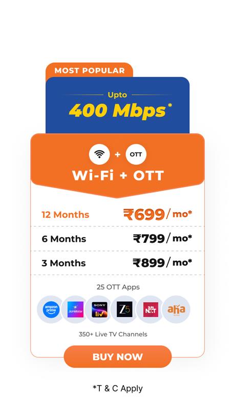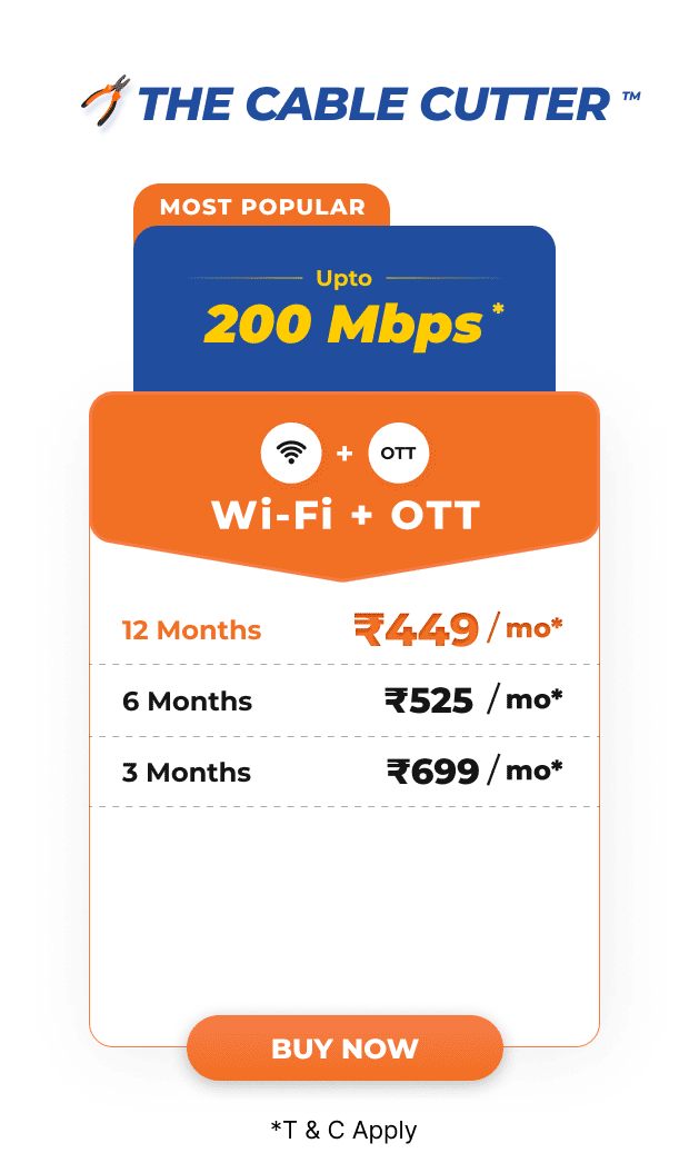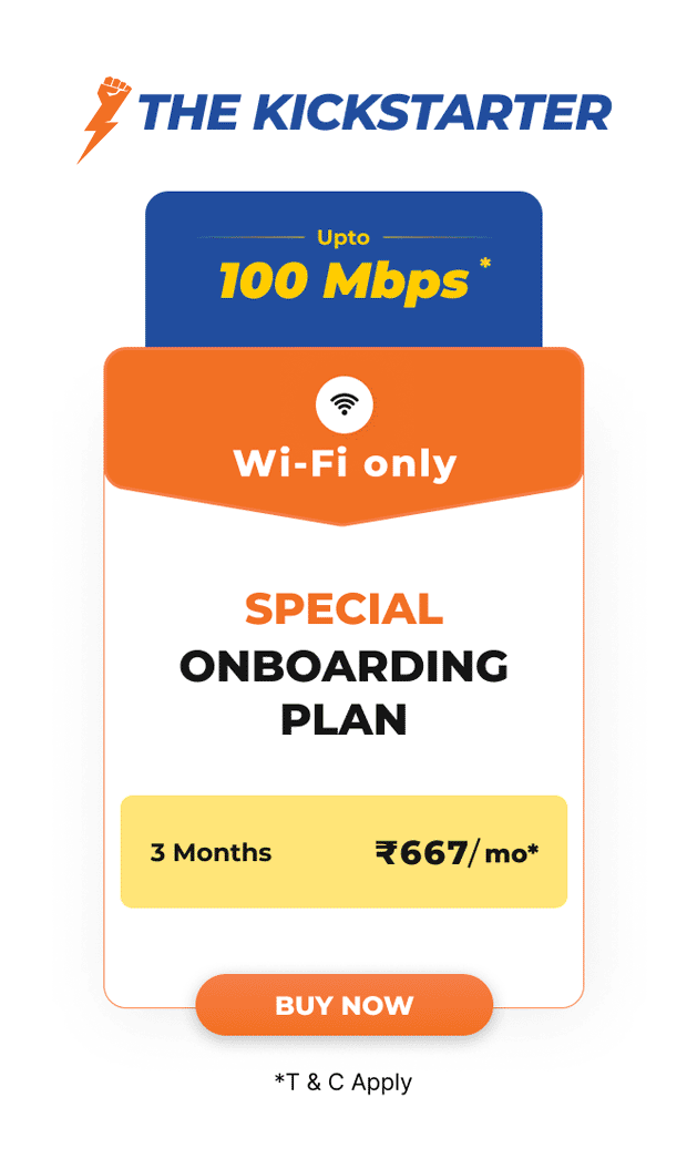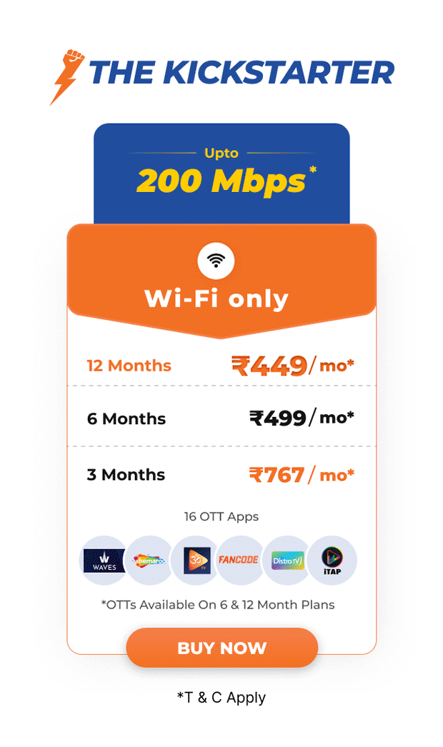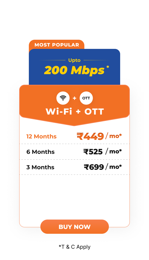 - The 100 Mbps plan for 9 Months and 200 Mbps for 3 months is available only for new subscribers.